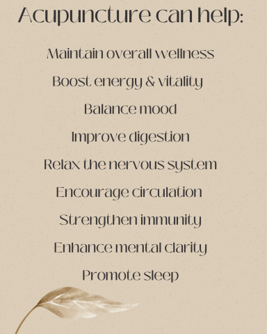 Whether you’re curious about acupuncture, looking for a boost in energy, or simply wanting some calm time for yourself, come and say hello - I’d love to see you there.